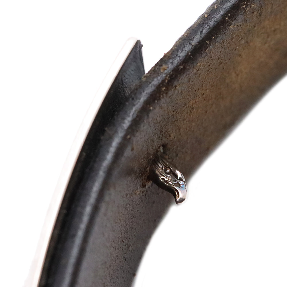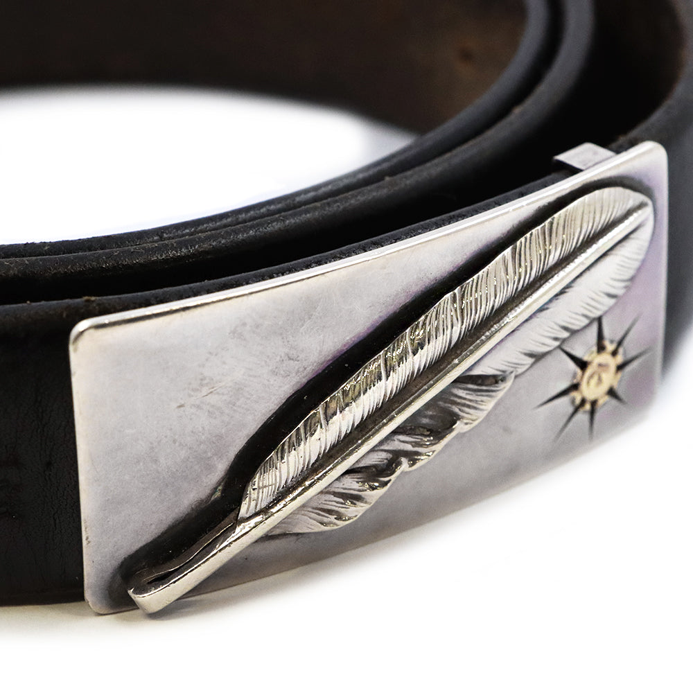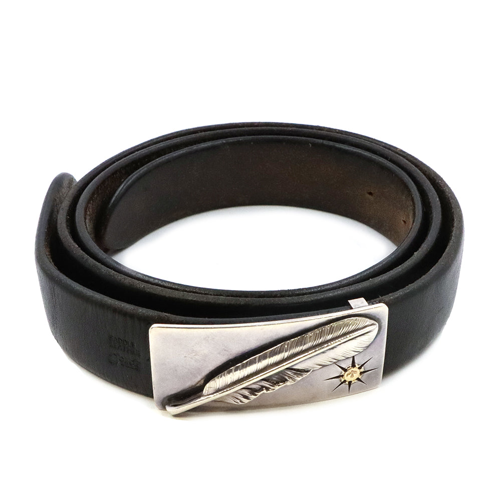 角バックルにSVプレーン特大フェザーがロウ付けされたデザインのベルトです。