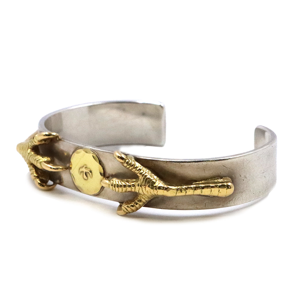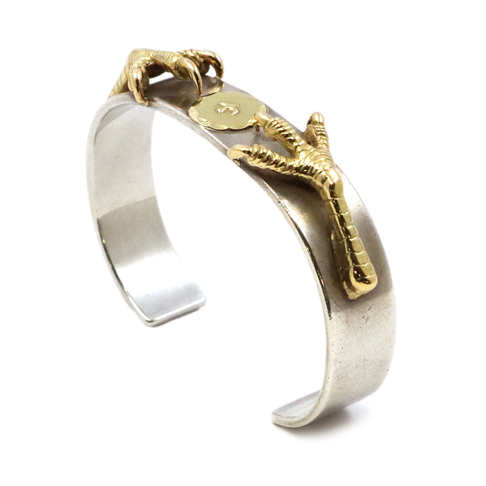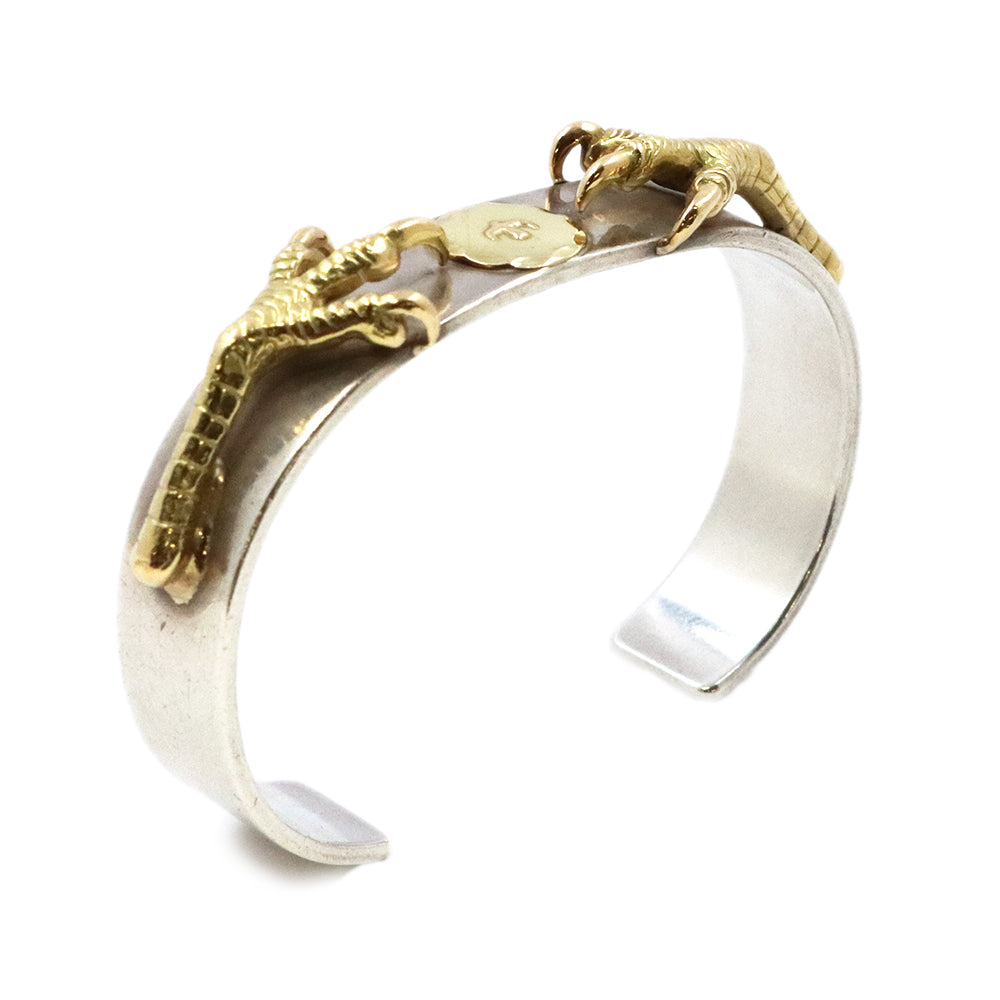メタルの両脇にセッティングされた金爪が圧倒的なオーラを放ちます。使い込むほどブレス部分のシルバーと金爪のコントラストが非常に美しく浮かびます。