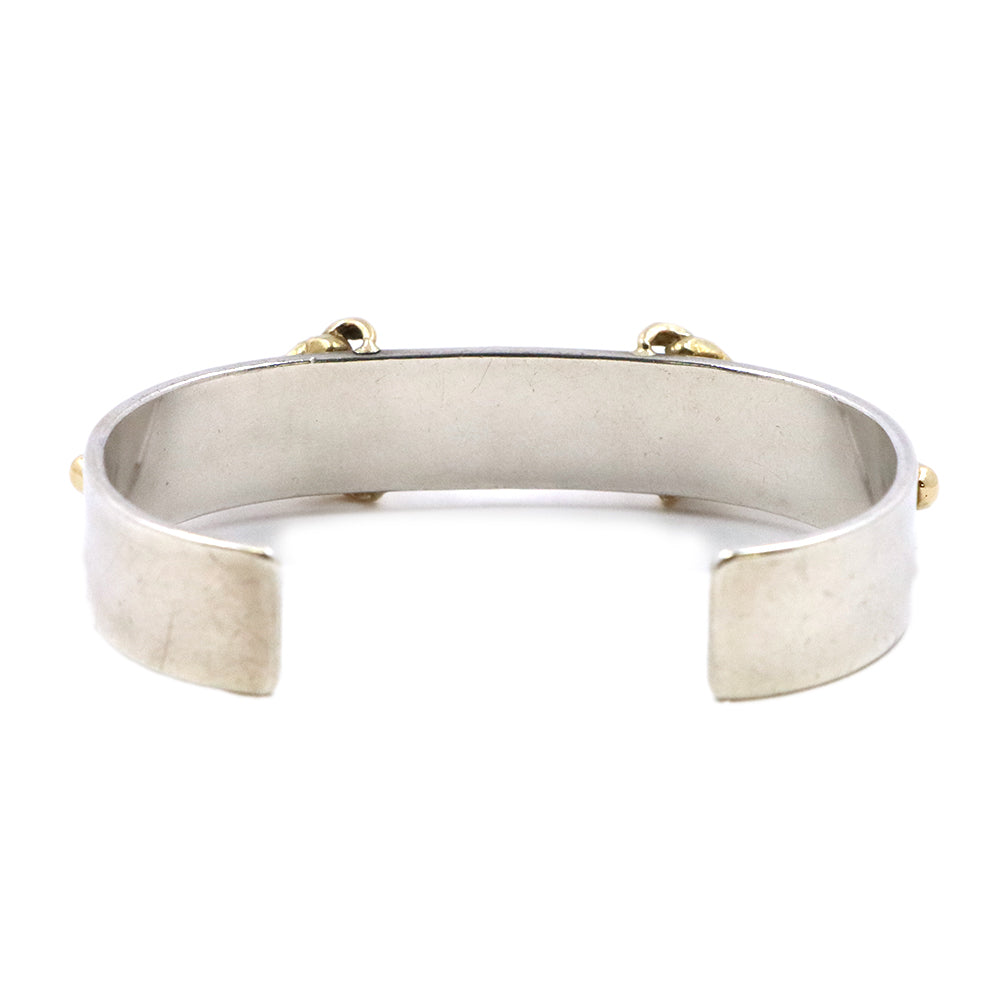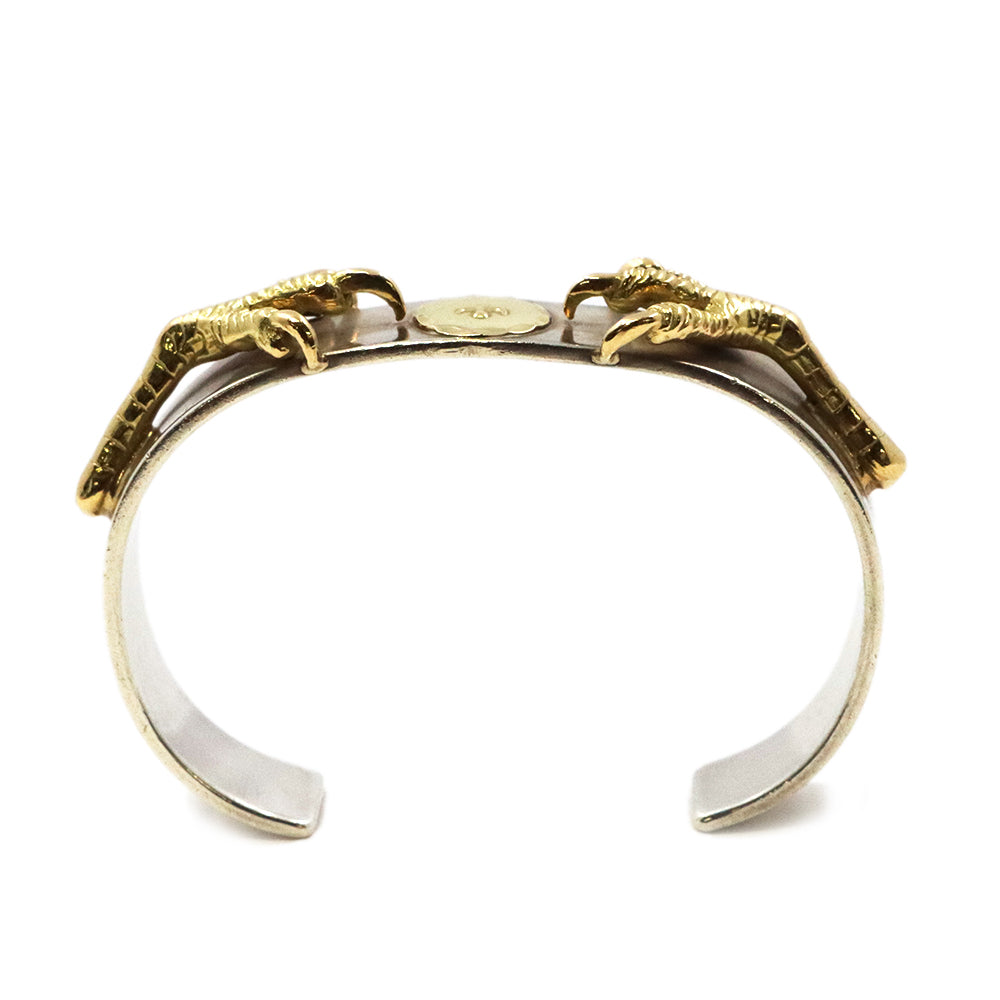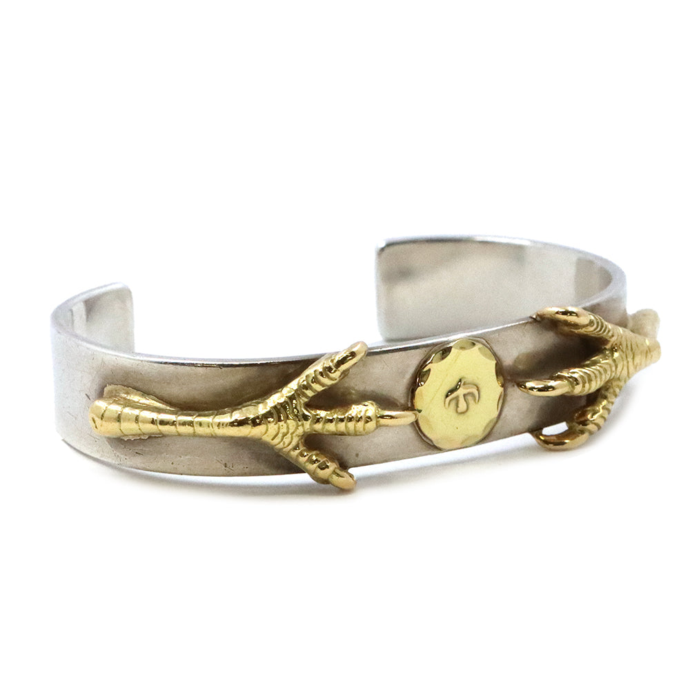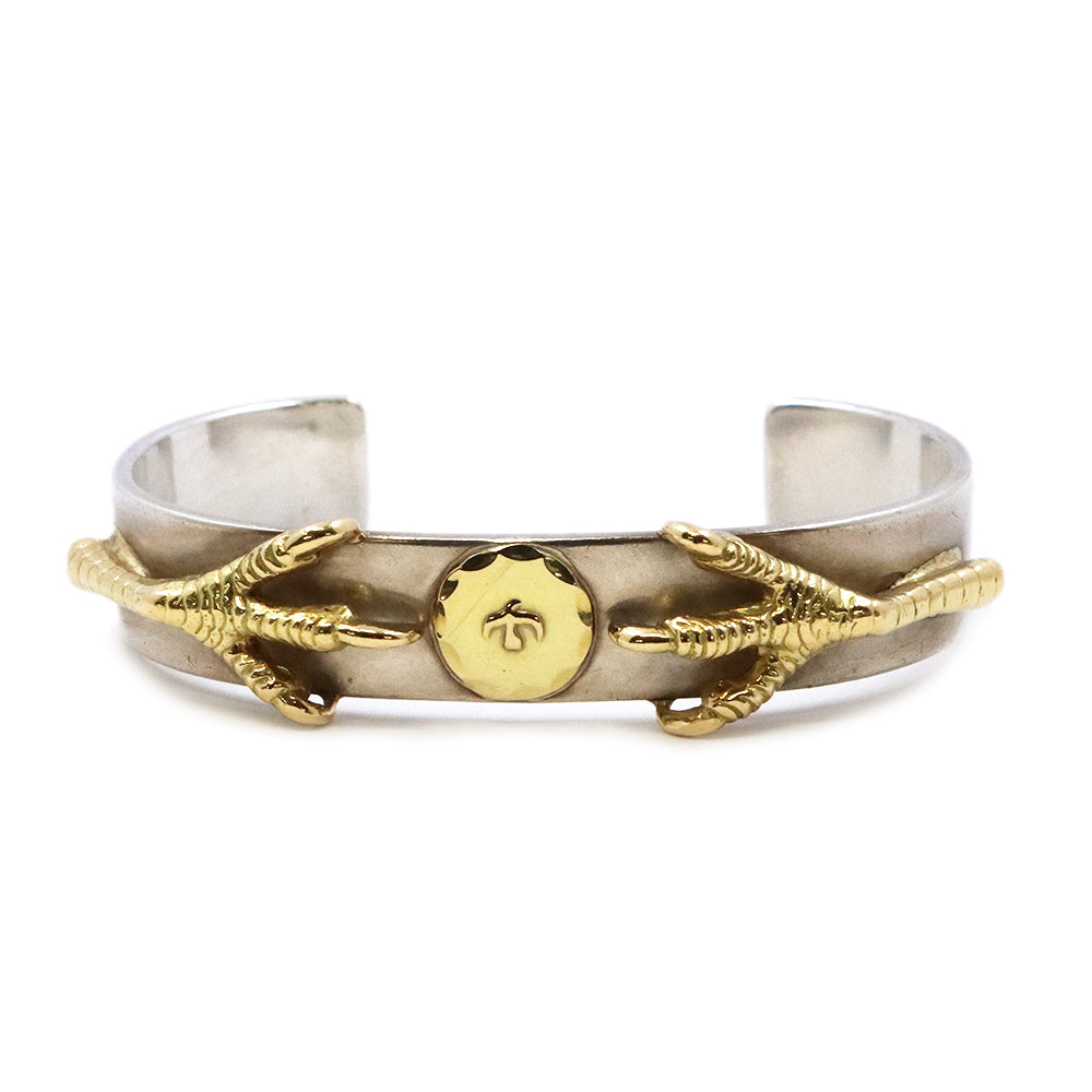 メタルの両脇にセッティングされた金爪が圧倒的なオーラを放ちます。使い込むほどブレス部分のシルバーと金爪のコントラストが非常に美しく浮かびます。