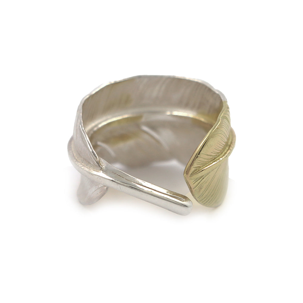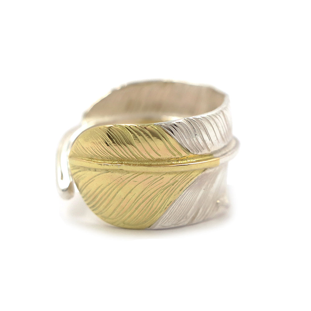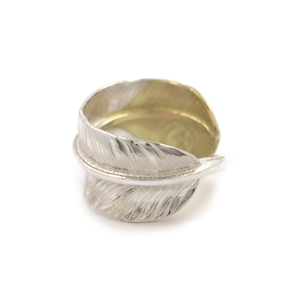 一番人気の特大フェザー、先金フェザーを丸めてリング状にした陰陽のバランスがとても美しいリングです。