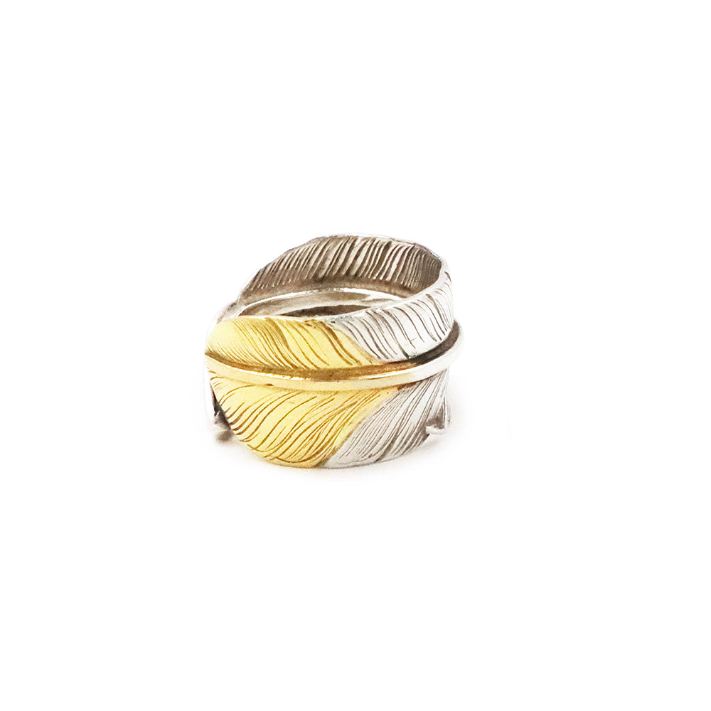 一番人気の特大フェザー、先金フェザーを丸めてリング状にした陰陽のバランスがとても美しいリングです。