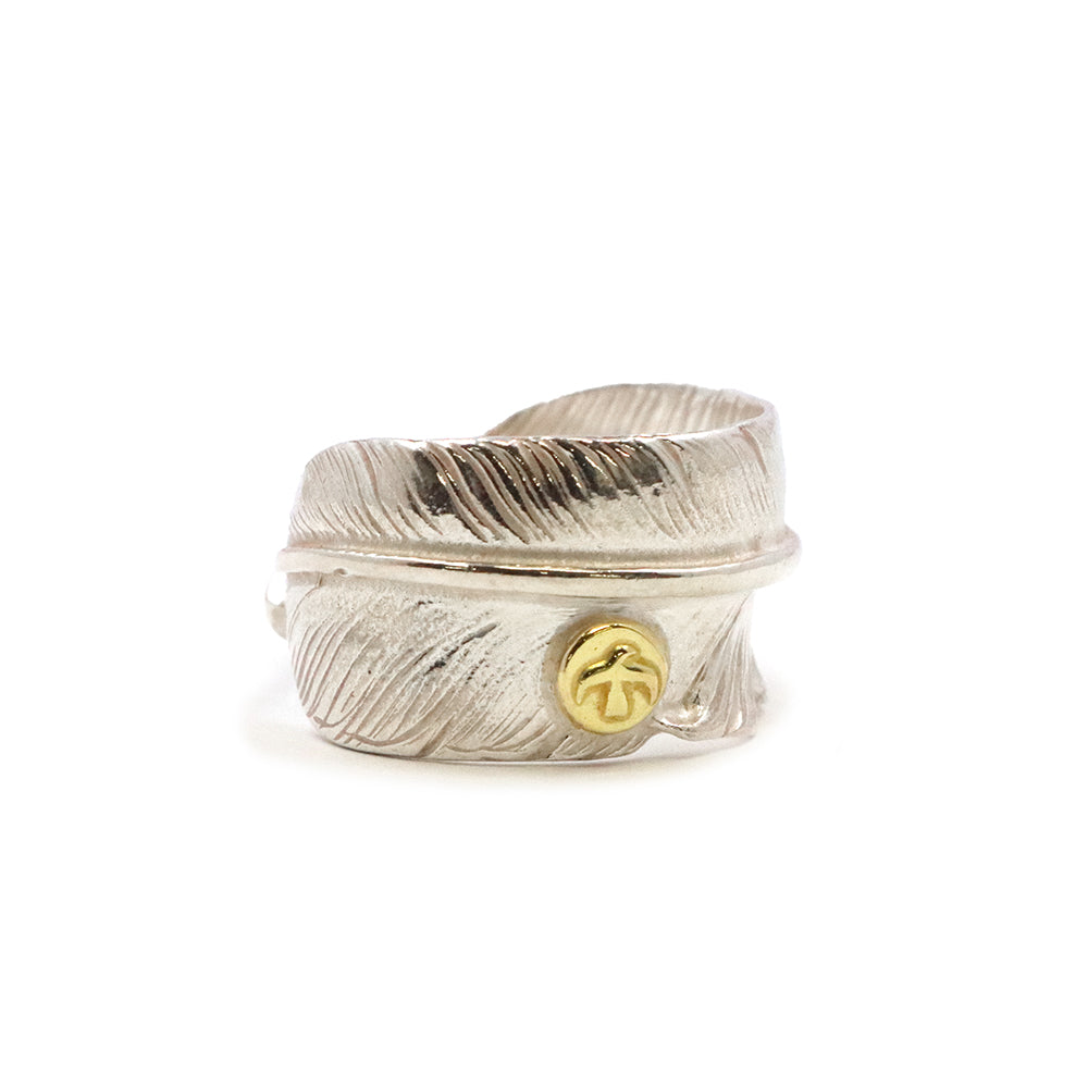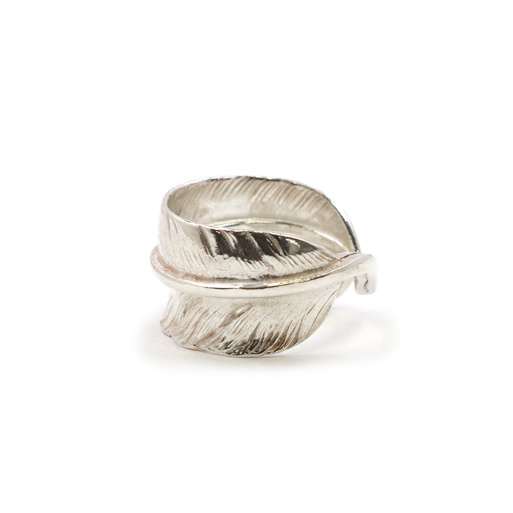 一番人気の特大フェザー、先金フェザーを丸めてリング状にした陰陽のバランスがとても美しいリングです。